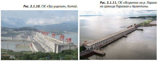 Активно развивает гидроэнергетику Китай. В этой стране размещено до половины малых гидроэлектростанций мира, а также крупнейшая ГЭС за Земле «Три ущелья» на реке Янцзы мощностью 22,5 ГВт (Рис. 3.1.10). Ещё более крупную ГЭС «Гранд Инга» мощностью 39 ГВт планируется построить на реке Конго в Демократической Республике Конго в Африке.